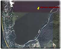 Если добираться на общественном транспорте - добираемся на электричке до ж/д станции Тарховка, а там пешком около 2 км по озеру Разлив.