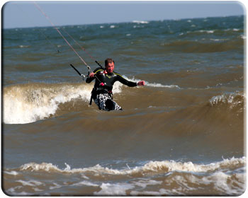 У нас, в г. Санкт – Петербурге, пожалуй, единственное место для вэйв кайтания это Солнечное, где рельеф дна при условии достаточного сильного ветра образуют довольно большие волны.