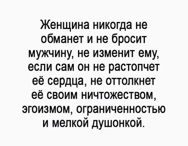 «Я была с одним ребенком и беременная вторым, когда узнала о неземной любви мужа. Как выяснилось, я – толстый бегемот, который не развивается, и поговорить со мной не о чем, и смотреть страшно. А она – само совершенство. И недвижимости у него море – хи, одна квартира мамой подаренная, и бизнес у него, ха-ха, это он ее приводил в мой салон (я с нуля бизнес пыталась открыть, в тот раз не успешно) и широким жестом предлагал выбрать все, что она хочет… Развелась я с ним.