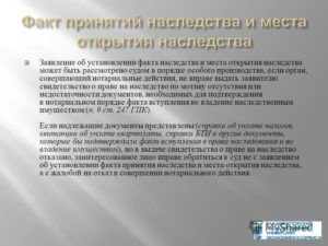 Это означает, что закон связывает момент возникновения у наследника права собственности на оставленное имущество с моментом открытия наследства. Гражданский кодекс говорит, что наследник принял наследство, когда он фактически вступил во владение им или когда он подал нотариусу заявление о принятии наследства. Принятое наследство признается принадлежащим наследнику со времени открытия наследства.