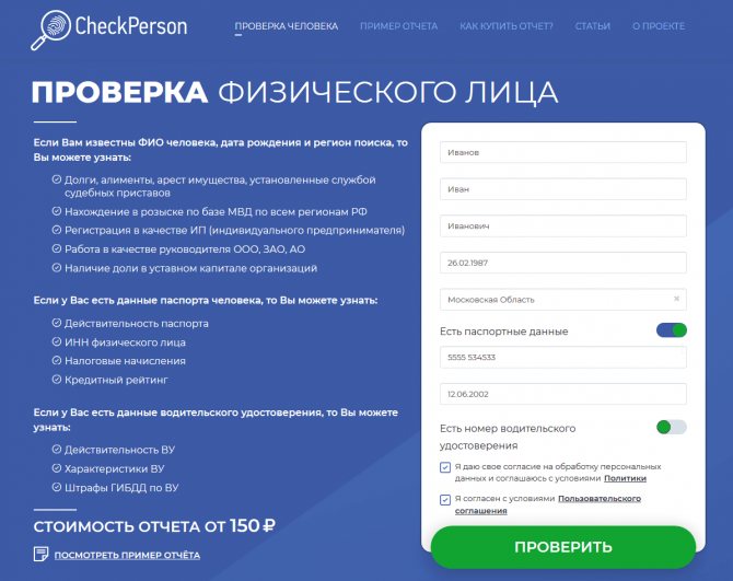 Услуга «Досье на человека»