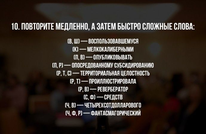 - Проговаривайте скороговорки. Они тренируют дикцию и развивают артикуляционный аппарат, пишет Ольга Марченко, автор книги «Основы красноречия. Риторика как наука и искусство убеждать».