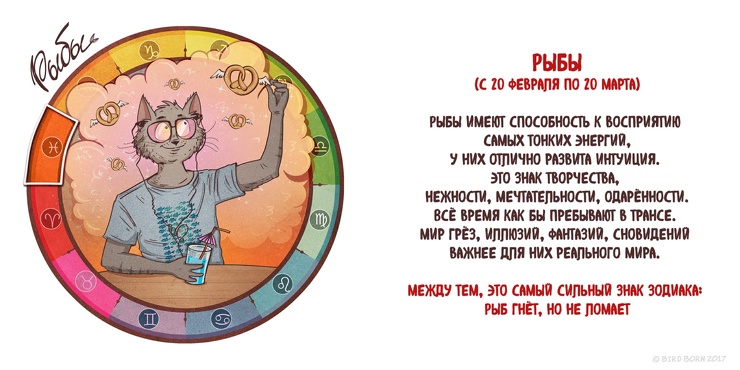 Рыбы – 12-й знак Зодиака. Какие характеристики присущи мужчинам и женщинам, чьи даты рождения приходятся на 19 февраля – 20 марта?РыбыДвенадцатый из 12 или 13 знаков зодиака (если считать вместе со Змееносцем). Получил название от одноименного зодиакального созвездия.Древние вавилоняне видели на небе не водных животных, а Рыбу и Ласточку. А нынешнее название созвездия, давшего имя знаку, закрепилось в астрологии благодаря древнегреческому астроному и астрологу Клавдию Птолемею – создателю геоцентрической системы мироздания. Он же каталогизировал созвездия наряду со многими другими во II веке нашей эры.Но неужели на небе оказались простые рыбы? Разумеется нет! У древних греков без воли богов и шага было нельзя ступить, так что и в этом случае без них не обошлось.