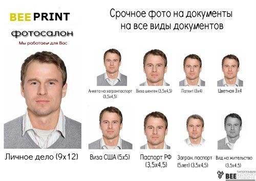 | 3,5 х 4,5 | паспорт РФ, анкета на загран. паспорт | 5 шт | 300 р |