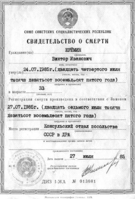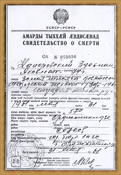 - Подробное свидетельство о смерти