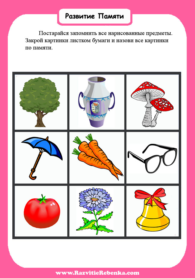 Используйте картинку с достаточным количеством разнообразных объектов. Внимательно посмотрите на нее в течение 2-х минут, затем закройте глаза на пару секунд. Когда откроете, запишите на лист бумаги все, что помните.