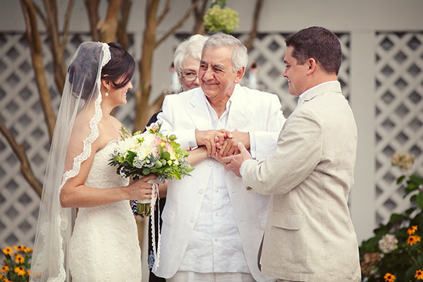 Но сегодня, когда я наблюдаю, как она выходит замуж за замечательного мужчину, я полон гордости и уверен, что она и (Жених) собираются отправиться в чудесное путешествие, наполненное любовью и счастьем, которое может прийти только как мужчина и жена. Пусть вы двое всегда относитесь друг к другу с любовью, состраданием и добротой.