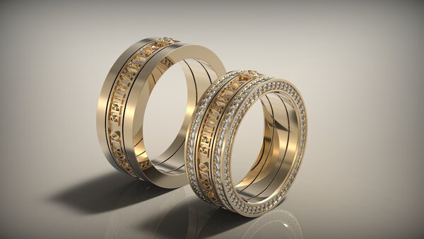 Вместе они образуют прочный союз, соединяя в себе мужское и женское начало. В кольцах разрешаются делать вставки из противоположного материала, главное, чтобы они не доминировали над основным.