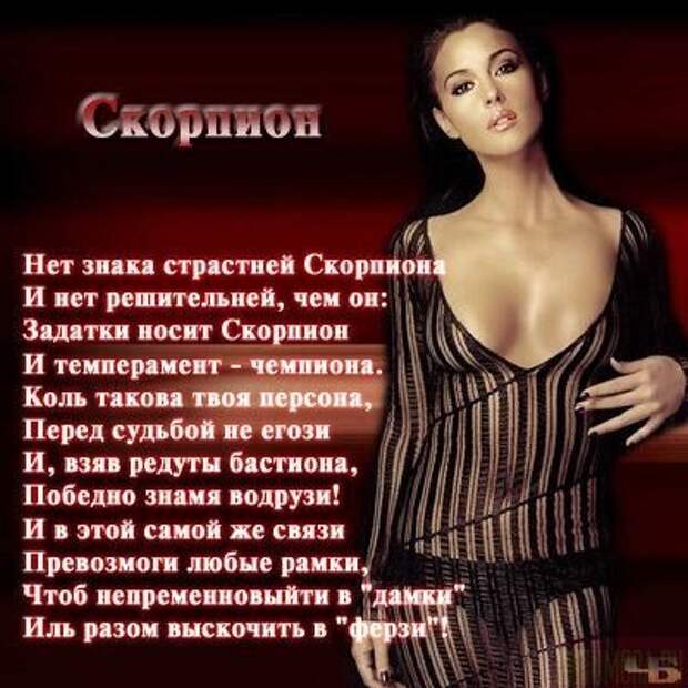 Скорпион мужчина из тех людей, которые любят сильных женщин. Ему нужна та, которая не будет уступать ему ни в чем. Она должна быть умной, красивой, самостоятельной. В общем успешной. Только с такой девушкой он сможет начать близкое общение.