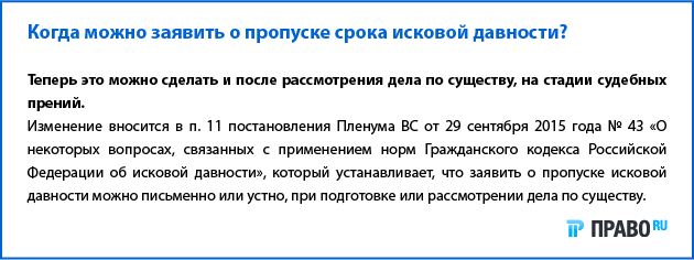 Срок исковой давности – установленный законодательством срок, после окончания которого имущественные претензии истца по отношению к ответчику не будут удовлетворены.